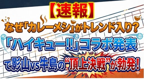 2026年2月5日の午後、X(旧Twitter)のトレンドに突如として「カレーメシ」が浮上しました。14時30分の公式発表直後から、ファンの熱狂的な反応によって瞬く間に話題が拡散されたのです。 その理由は、大人気アニメ『ハイキュー!!』と日清カレーメシによる電…